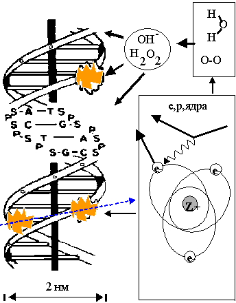 Прямой механизм действия излучения на живые структуры - нет зависимости от химическиого состочния мишени. |