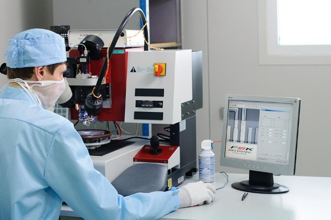 - УЗ-сварку бескорпусных микросхем с золотыми, алюминиевыми, никелевыми контактными площадками, размером от 40*50 мкм, в автоматическом режиме;
