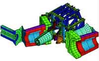 При проектной светимости коллайдера LHC в точке пересечения пучков эксперимента CMS будет происходить около миллиарда взаимодействий протонов за секунду. Рекордные энергия и интенсивность ускорителя делают радиационное воздействие на детекторы и оборудование одним из основных факторов, ограничивающих эффективность эксперимента. Для снижения уровней фонового излучения и радиационных нагрузок служит мобильная защита, расположенная на границе подземного зала эксперимента CMS и туннеля LHC. Физики и инженеры ГНЦ ИФВЭ совместно со специалистами из CERN ведут разработку и отвечают за изготовление и испытания мобильной защиты. Для подготовки проекта установки широко применяется математическое моделирование физических и механических параметров защиты. Конструкция защиты должна обеспечить максимальную эффективность в использовании ограниченного пространства подземного зала. Необходимо ослабить вредные воздействия излучения при минимальных габаритах и весе устройства. Принципиальная новизна проекта - подвижность элементов защиты при помощи системы гидравлических приводов - даёт возможность быстрого доступа ко внутренним детекторам, что важно при проведении их обслуживания и ремонта. Для оптимизации веса защиты будут использованы композитные материалы, размещенные в соответствии с закономерностями формирования и изменения спектрального состава радиационных полей при проведении эксперимента CMS. |