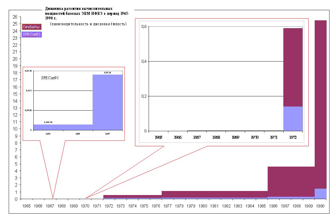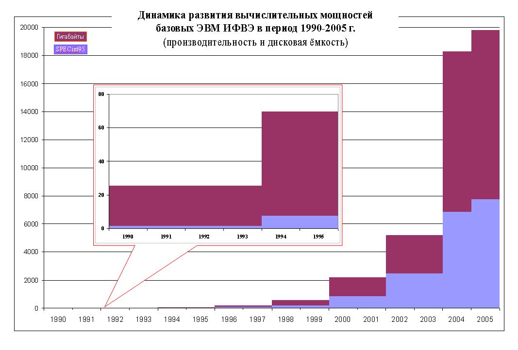 Динамика роста вычислительных ресурсов ВЦ ИФВЭ с момента его
