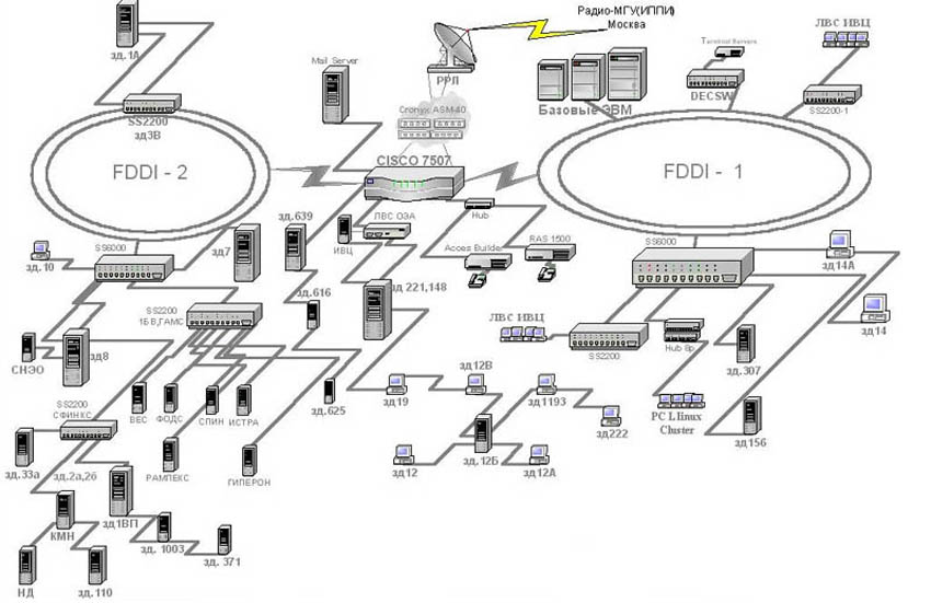 информационным и вычислительным ресурсам. Структура сети ИФВЭ представлена